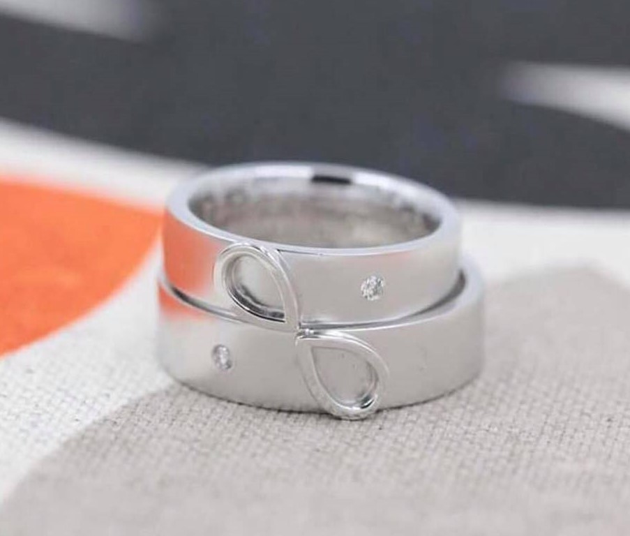 Set with two 0.01ct each brilliant stones that will add accent to its dainty infinity puzzle design