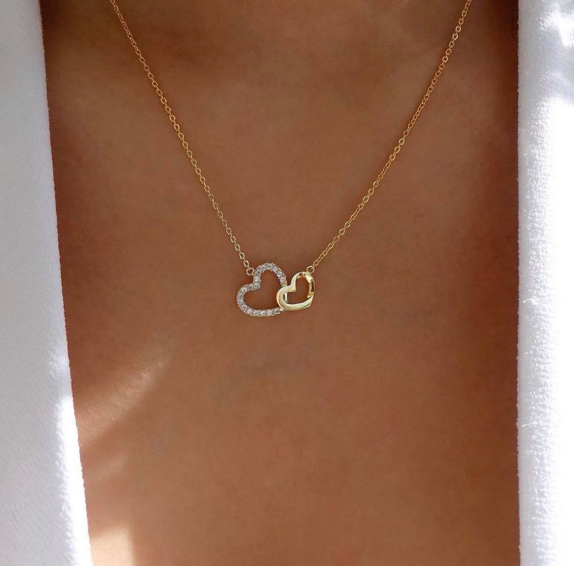 Small and big heart pendant set with 18pcs 0.01ct each round brilliant cut stones 16 or 18″