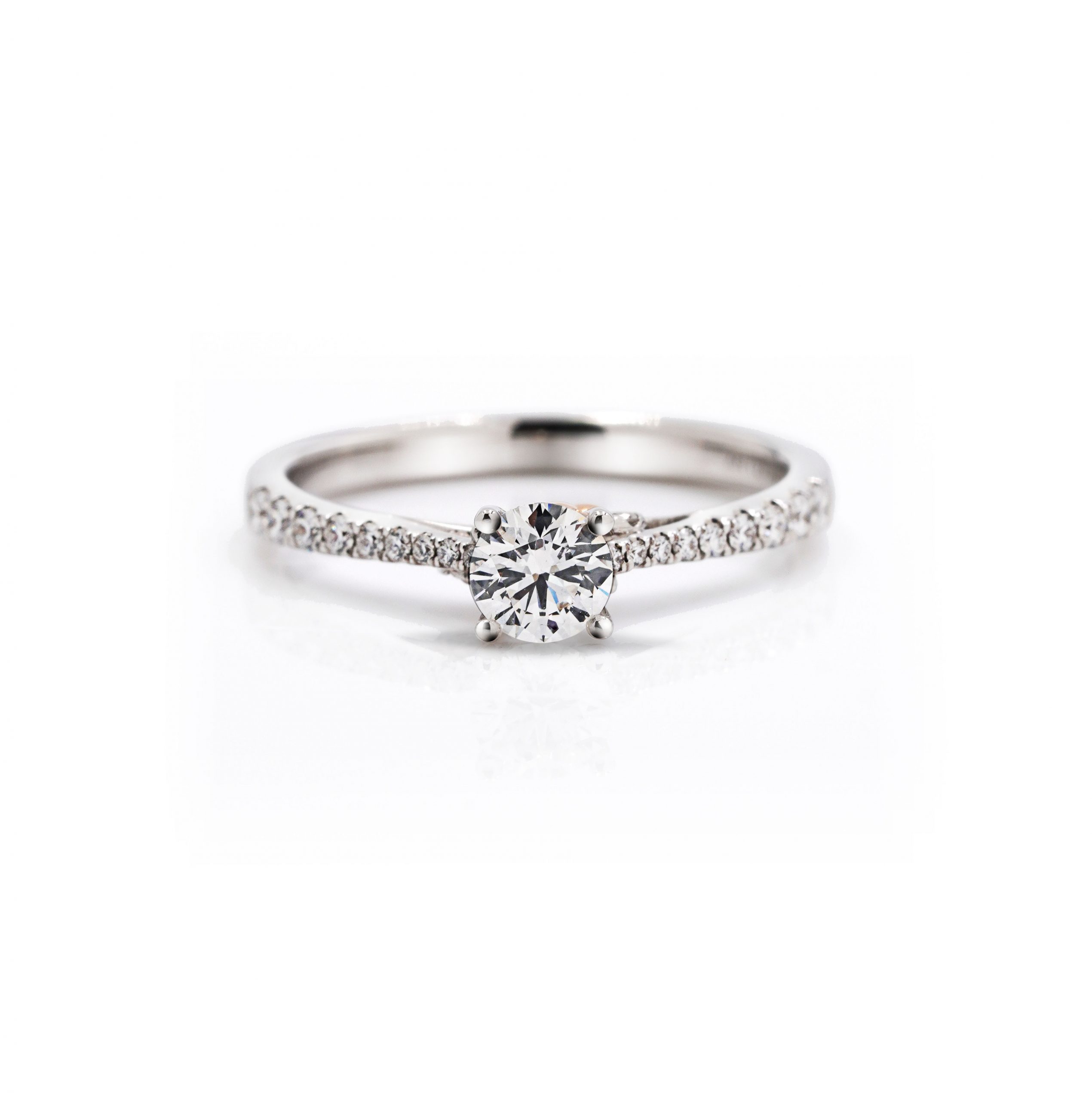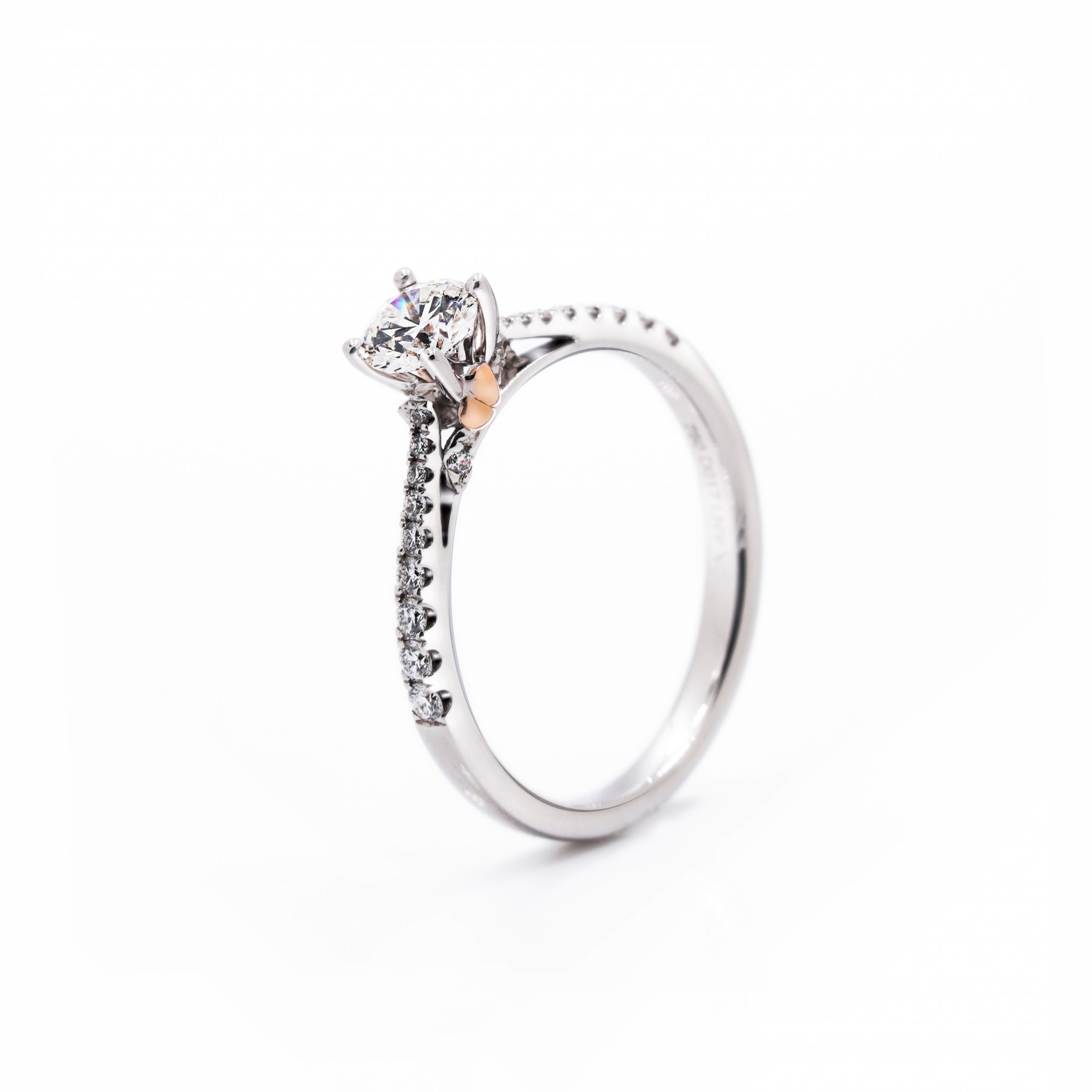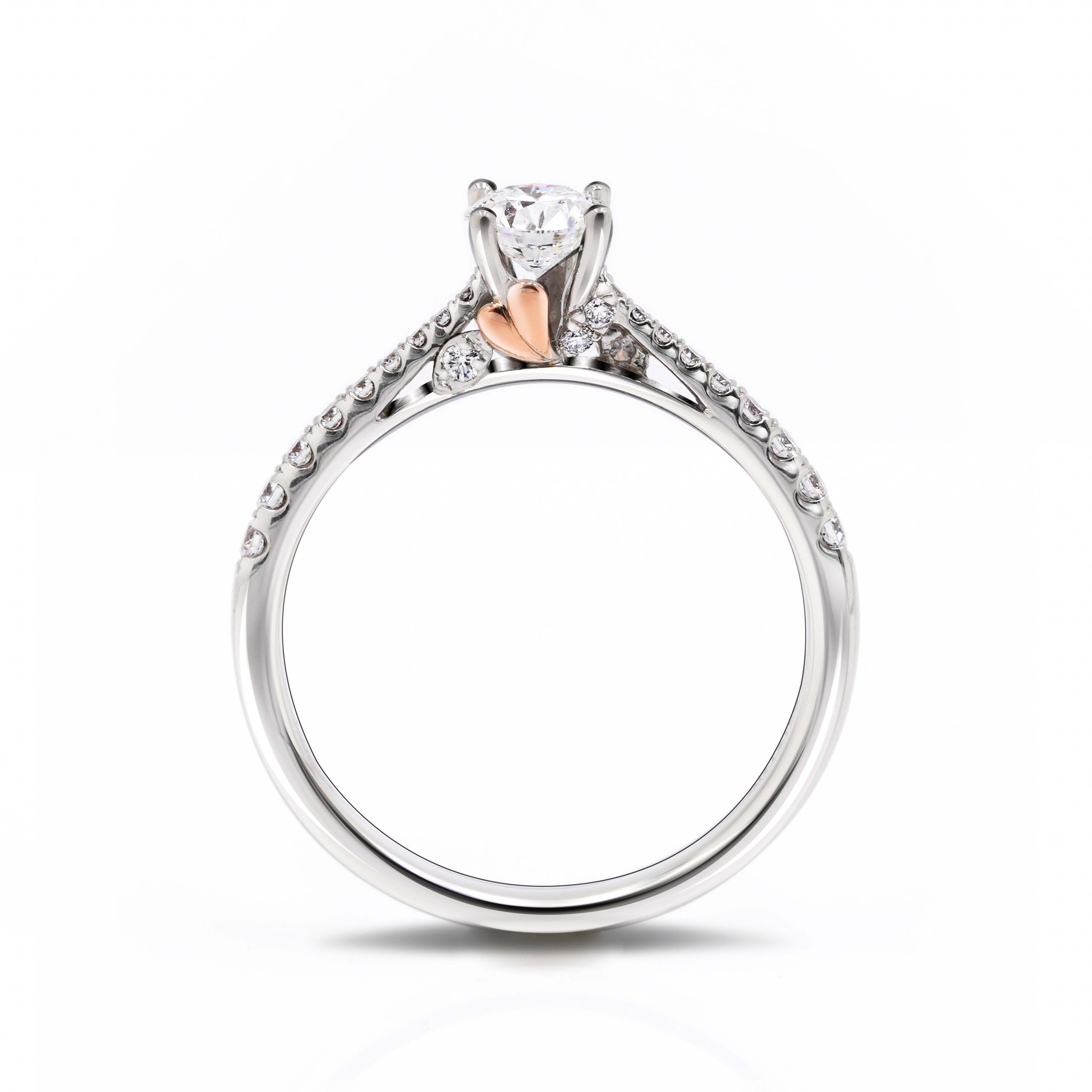 This contemporary ring features a cloverleaf design that represents love and hope. The pavé ring setting maximizes the shine of your center stone, providing an awesome display of fire and brilliance. Perfect choice for those who want something sparkling yet meaningful.