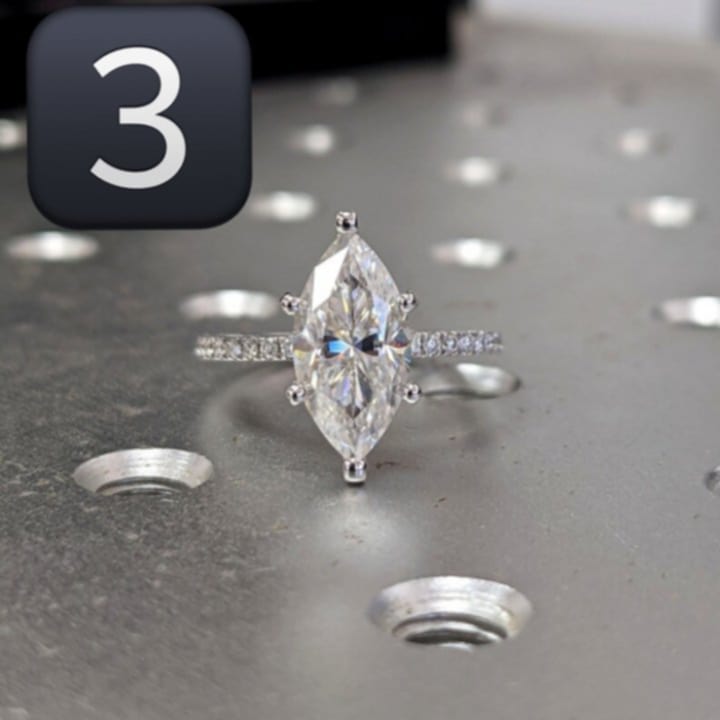 Stone: 1pc 2ct Pear Cut Center Labgrown Diamond Stone with 7pcs 0.01ct Round Cut Labgrown Diamonds on each side