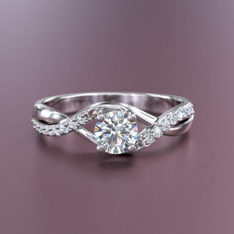 Features 1ct round brilliant center stone and 7pcs each sides of 0.01ct round brilliant cut moissanite stones