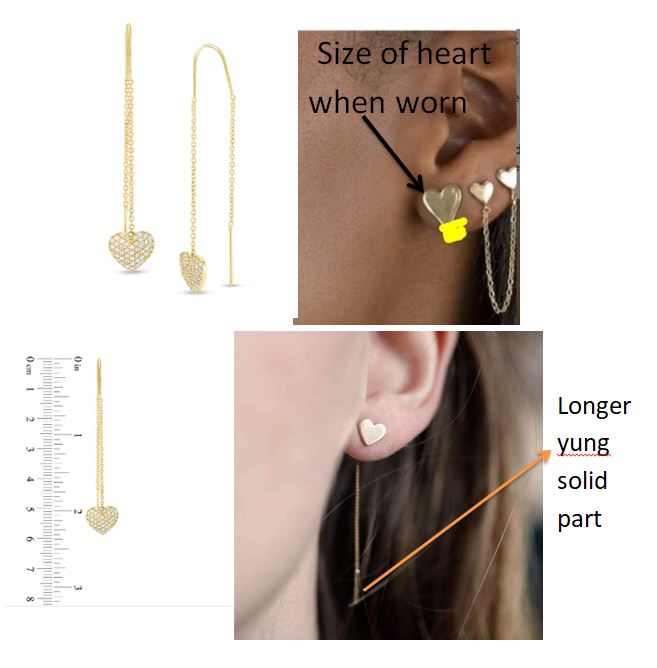 thread heart earrings with 1mm lab-grown diamond stones