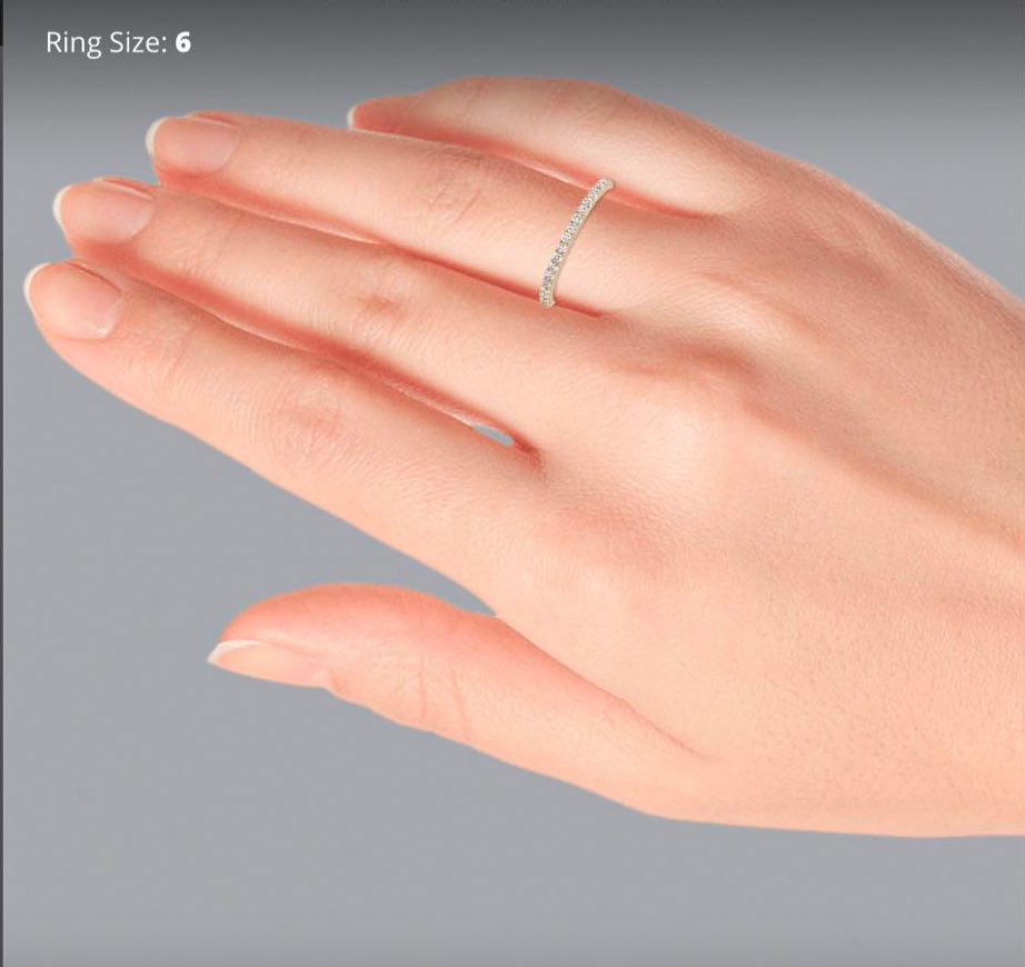 Nineteen round 1.3mm brilliant cut stones gives this elegant 1.5mm band radiance.
