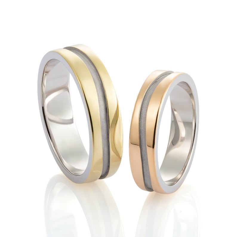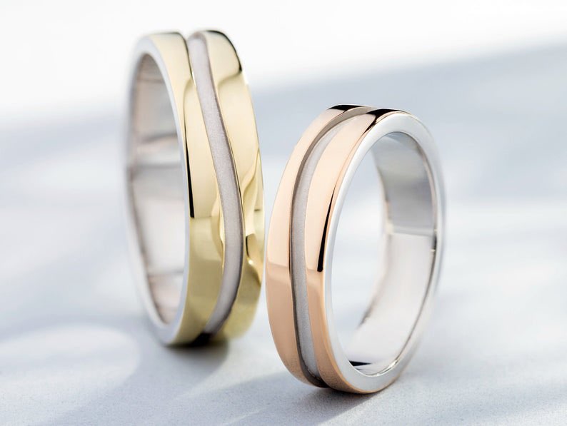 Yellow (primary or majority of color in a ring); White gold (secondary)